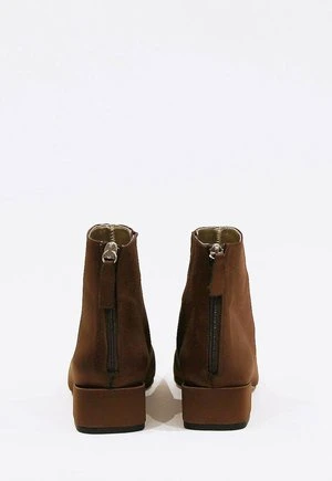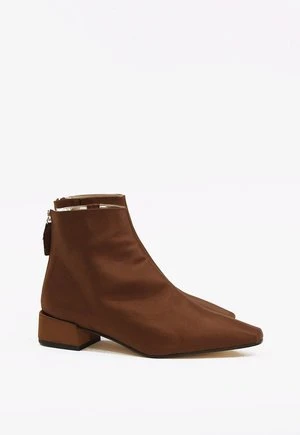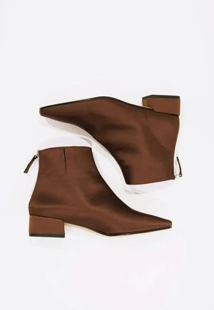 short heel ankle boots made with vegan satin. closes with a zip on the back.