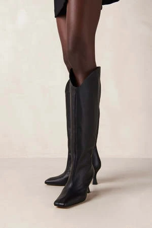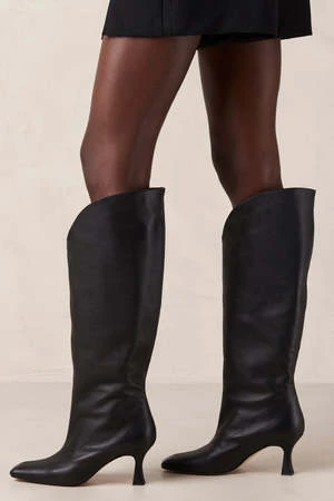If you’re on the hunt for a standout pair of tall boots, Billy should definitely be on your radar. Crafted leather, they have curved cuffs hitting right below the knee and comfortable stiletto heels that will win you over as soon as you put them on. Wear them over jeans for a statement fall look, or carry on styling them with summer dresses to manifest the weather you want, no matter the season.
