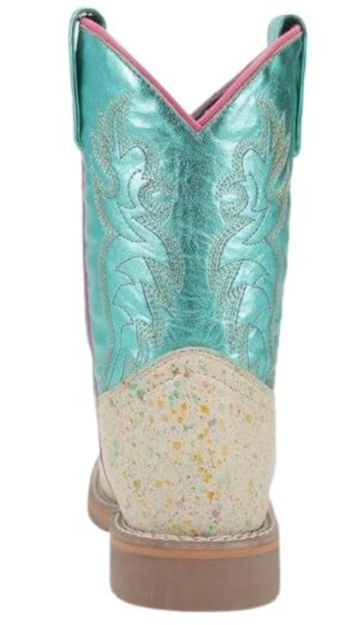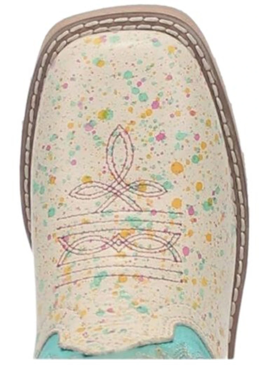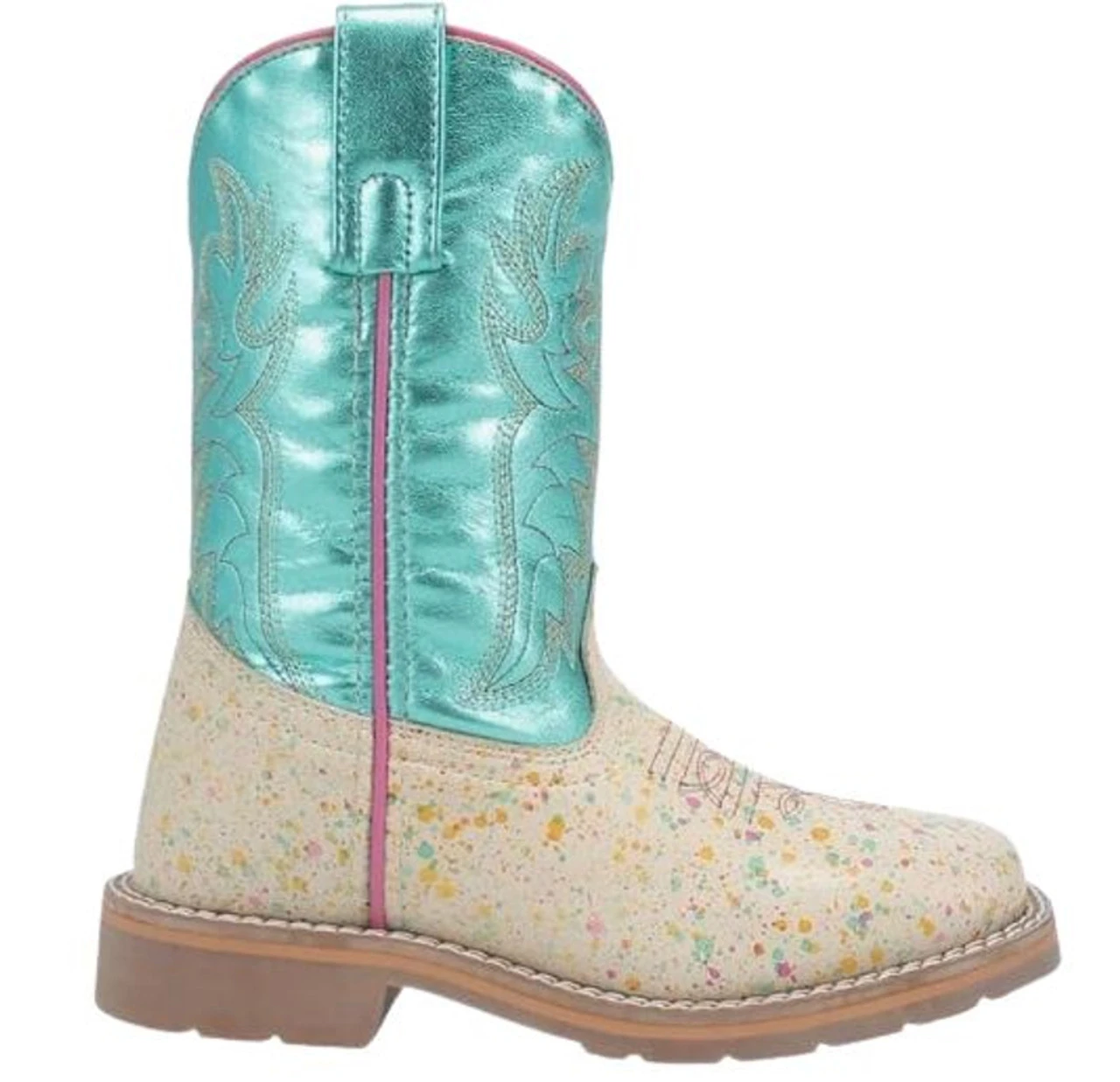 Dan Post Girls 8″ Pull On Splatt Teal Square Bone Western Boots