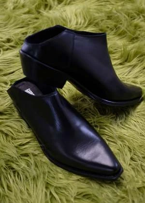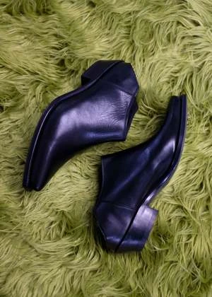 No.130 Sendra Cropped Boots in black leather. Natural markings are visible: pores, scars and variations in colour are not disguised.