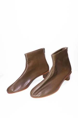 Ankle boot with back zipper closure and 1.8 inch heel. 100% unlined kid leather upper and leather outer sole. Handmade in Argentina. Fits true to size.