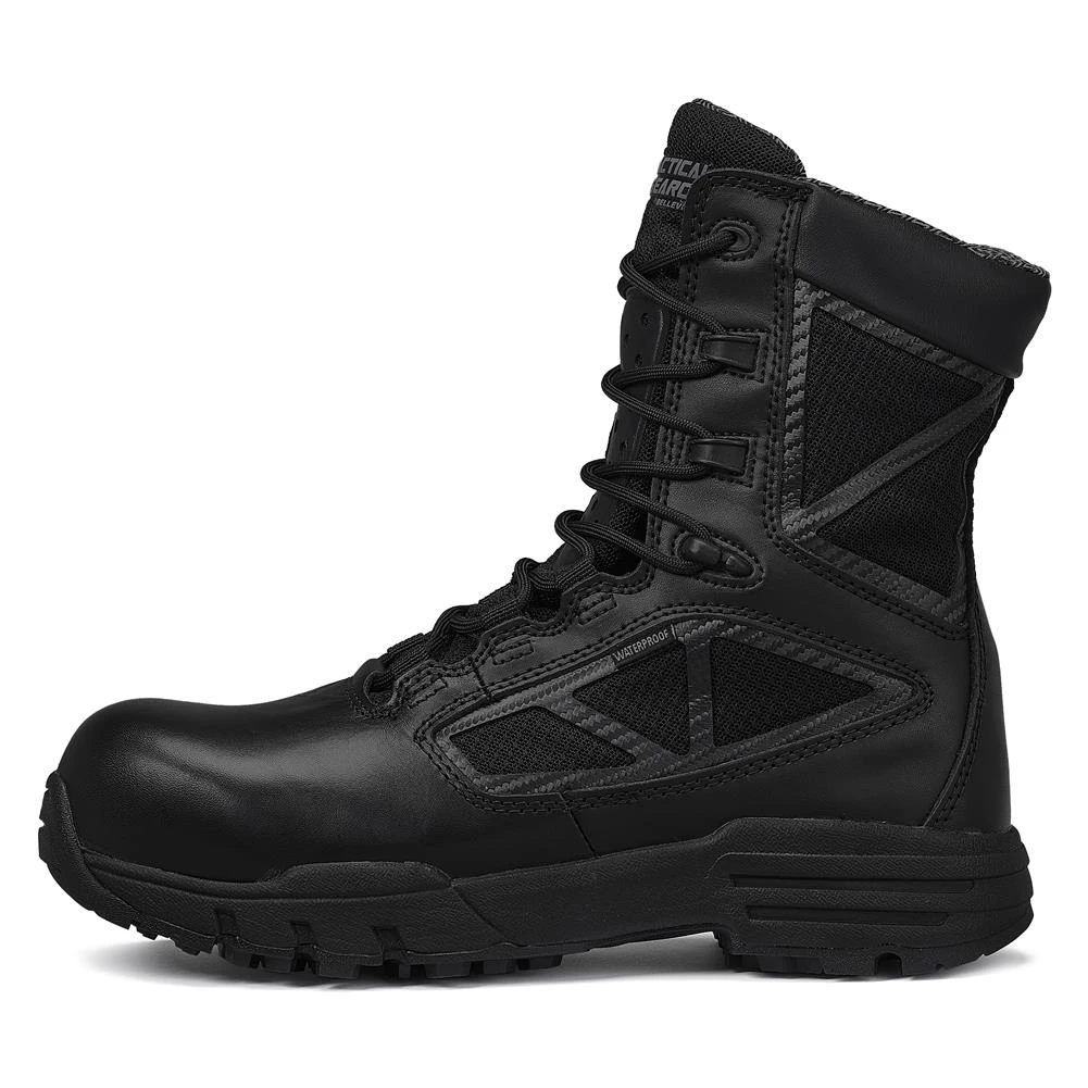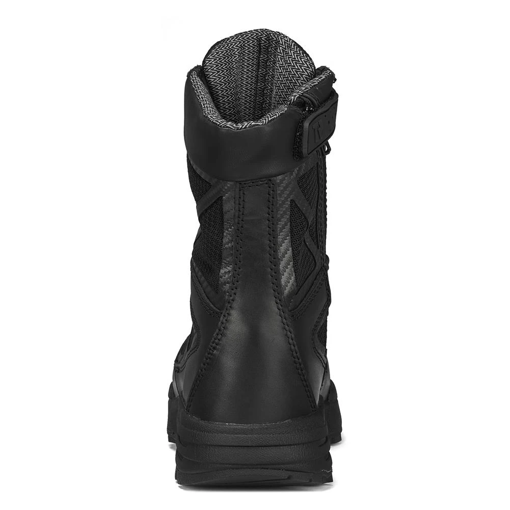 For the ultimate tactical boot in any weather, on any terrain and for any job, Tactical Research presents the Chrome CT SZ WP. These boots are made from ultra-durable cowhide leather with nylon mesh for rugged reliability and ventilation. The unique, non-marking rubber outsole is oil and slip-resistant and incorporates a lugged sole for traction and grip on uneven surfaces. It is designed to last year after year thanks to the high-performance StreetNav technology. A cushioned EVA midsole and a removable polyurethane insole provide comfort and arch support, as well as ankle support when performing strenuous actions. There is a waterproof inner membrane that wicks away sweat and keeps moisture out, and a blood-borne pathogen proof membrane for safety in hazardous conditions. The hybrid lacing system keeps your ankle and heel secure to prevent injury when running, while the side zipper makes these boots easily removable.