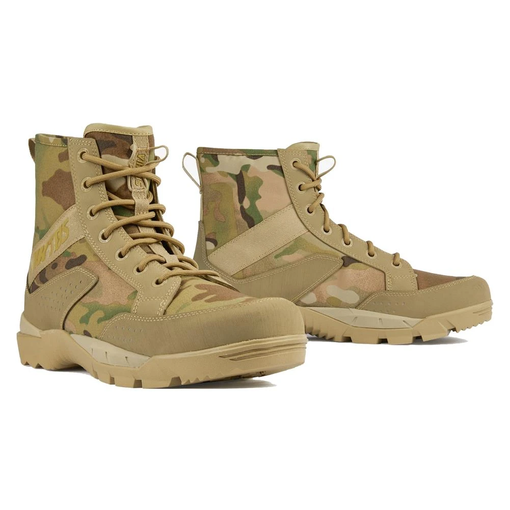The Johnny Combat MC (Multicam) boot is the next evolution of our proven 6″ warfighter chassis. The upper is comprised of 500D Nylon nIR Multicam fabric with a water-resistant coating. Rubber toe and heel overlays provided incredible durability against the elements. Internally the Johnny Combat MC boasts a wide forefoot allowing for foot splay under heavy tactical loads while remaining comfortable for long-term use. The improved Strife bottom-unit has improved rubber for traction and increased cushioning using high-rebound EVA foam. Specifically designed for operational use in asymmetrical combat, the Johnny Combat MC Boot has redefined tactical footwear.