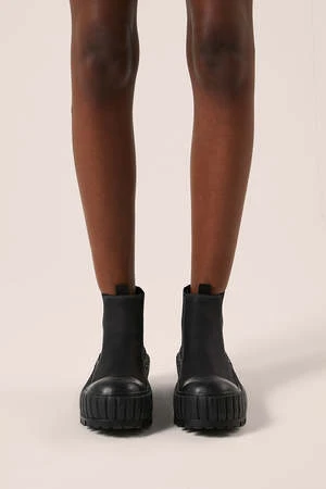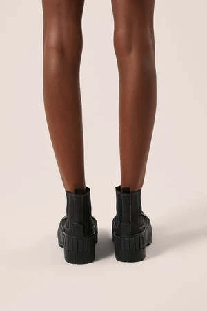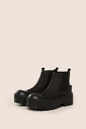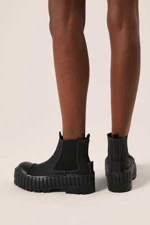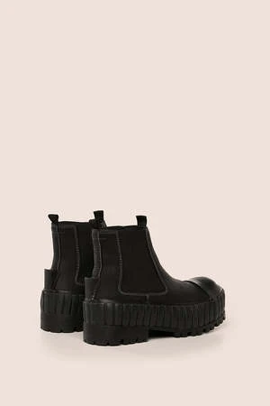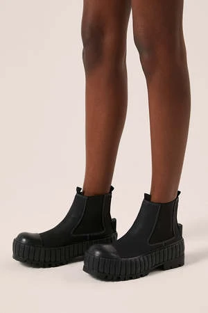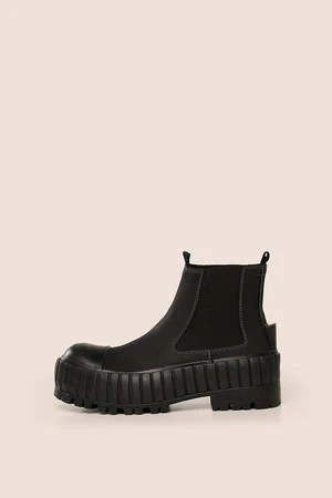 These ankle boots feature a contrast stitch design, a pull on style, a chunky rubber sole and a low block heel