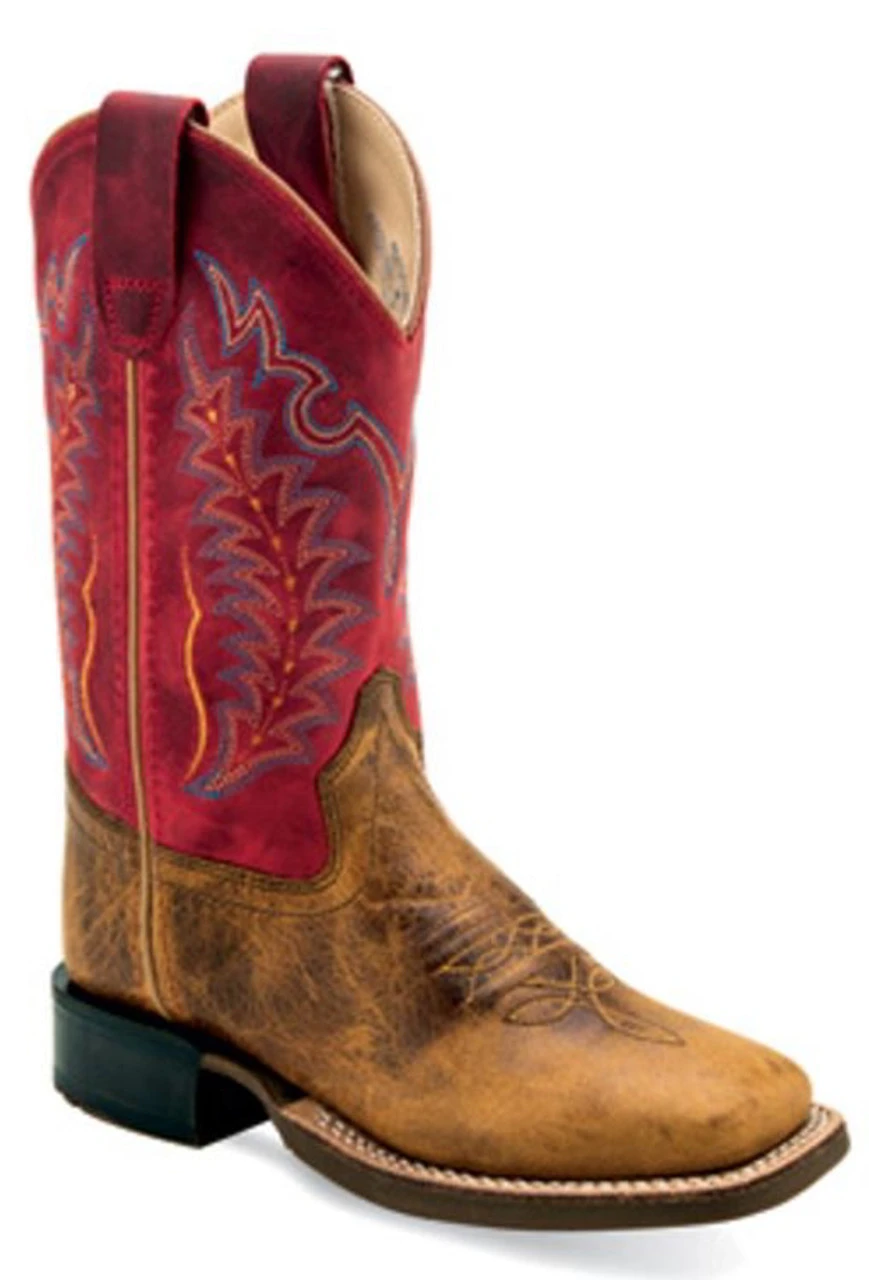Old West Boys Burnt Red And Brown Square Toe Cowboy Boots