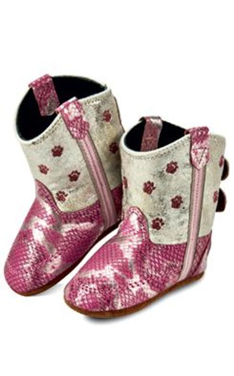 Old West Infant Girls Pink And Silver Snake With Pawprint Poppet Boots
