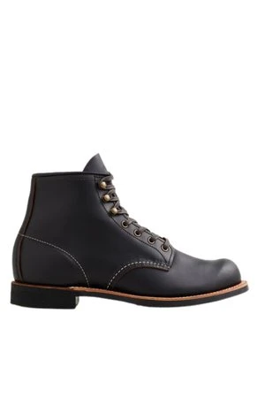 The Blacksmith is descended from a boot worn in workshops by day and shined up to go out at night. The 6-inch boot was designed to protect feet and ankles from hot cinders at the forge, and today it locks out dirt in the summer and snow in the winter. True to its roots, the Blacksmith blends construction and materials that create both rugged durability and handsome styling. Premium leather and a three-quarter Goodyear leather welt with Puritan triple-stitch construction sit on a Vibram 430 Mini-Lug outsole that provides reliable all-season traction.