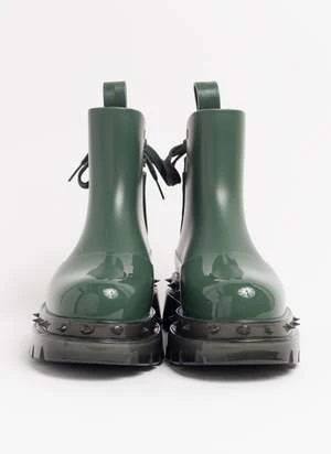 In this collaboration with Undercover the design is influenced by street culture and by the punk movement, with imposing and striking details, such as the spikes in PVC Melflex on the sole and the unexpected closure with shoelaces on the ankle. A versatile, comfortable, and timeless shape with fashion information.